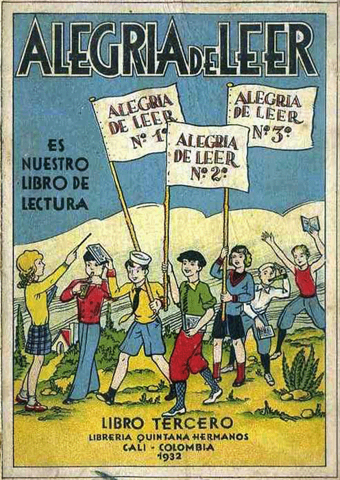 Un mundo desconocido se abría ante nuestros ojos; un mundo lleno de promesas, de conocimiento que apenas podíamos intuir. Bebíamos historias edificantes, con un espíritu amoroso y con clara intención educativa. Todo, gracias al libro rector, el libro ilustrado con dibujos sencillos de colores planos. En su portada, un grupo de niños llevaba ondeante el tricolor colombiano.